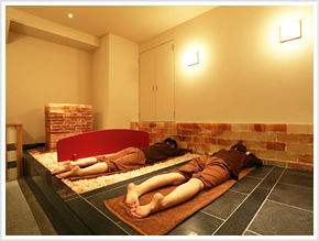 「岩塩浴」は岩塩浴ルームの壁が「岩塩」で作られており、岩塩に含まれるミネラルの働きで身体を芯から温めるとともに、老廃物をしっかり排出し、細胞を活性化させます。より、身体の事を考えて出来た「岩塩浴」は美容にとても効果的です。岩塩浴で良い汗をたくさんかくこと。これがさまざまな効果・効能につながります。まずは新陳代謝がよくなり、脂肪を燃焼しやすい体にしてくれるのでダイエットや、汗腺から有害金属も排出されやすくなるので、デトックス効果も期待できると言われています